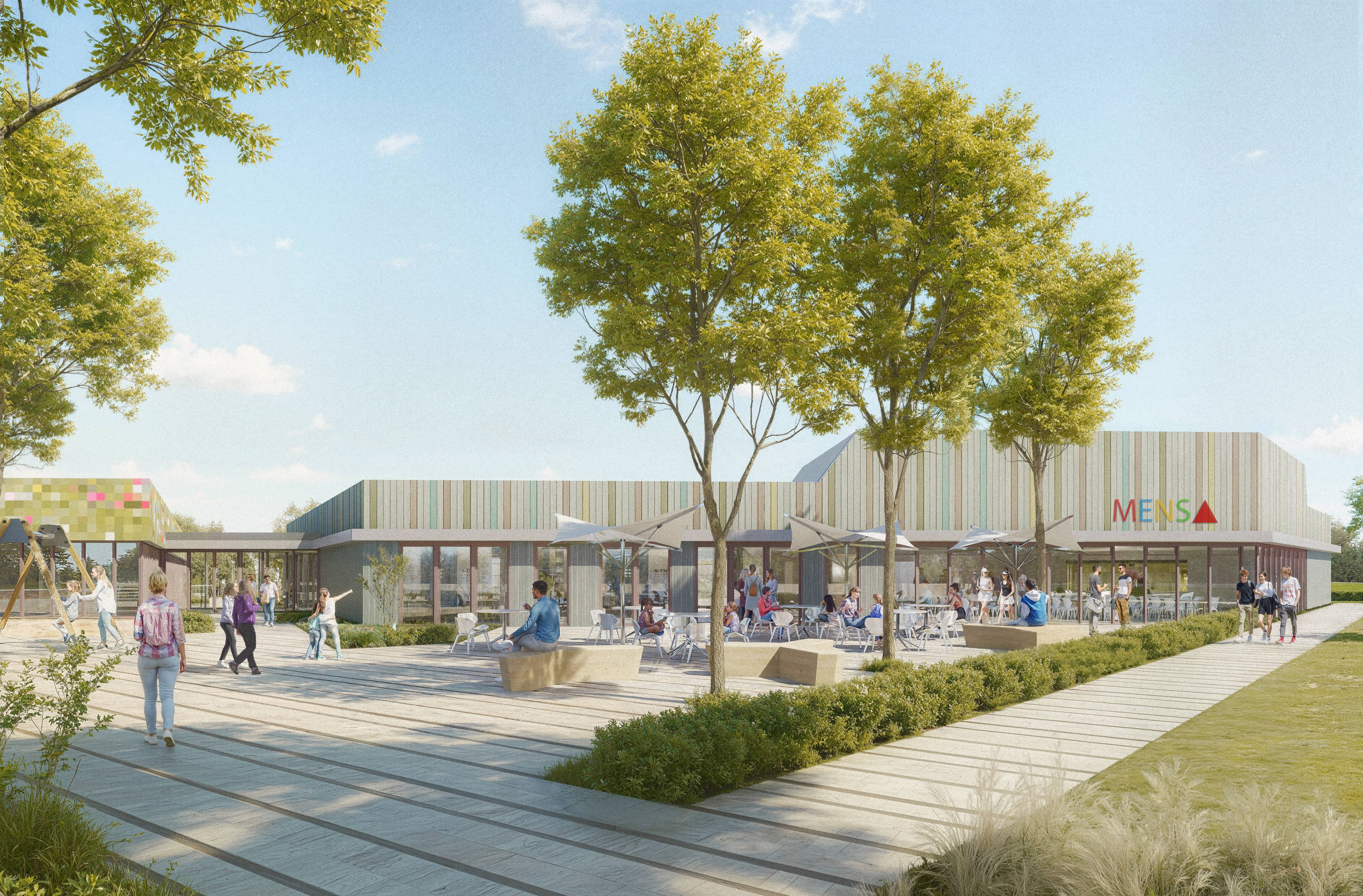 Ein neuer Baustein für den Schulcampus – vernetzt, nachhaltig, lebendig.